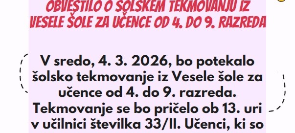 Spoštovani starši, v ponedeljek, 9. 3. 2026, so redne mesečne [...]