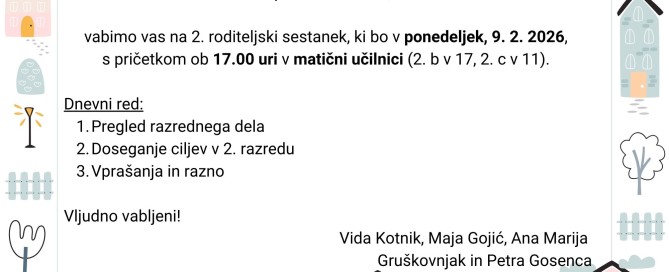 Spoštovani starši, vabimo vas na roditeljski sestanek, ki bo v [...]
