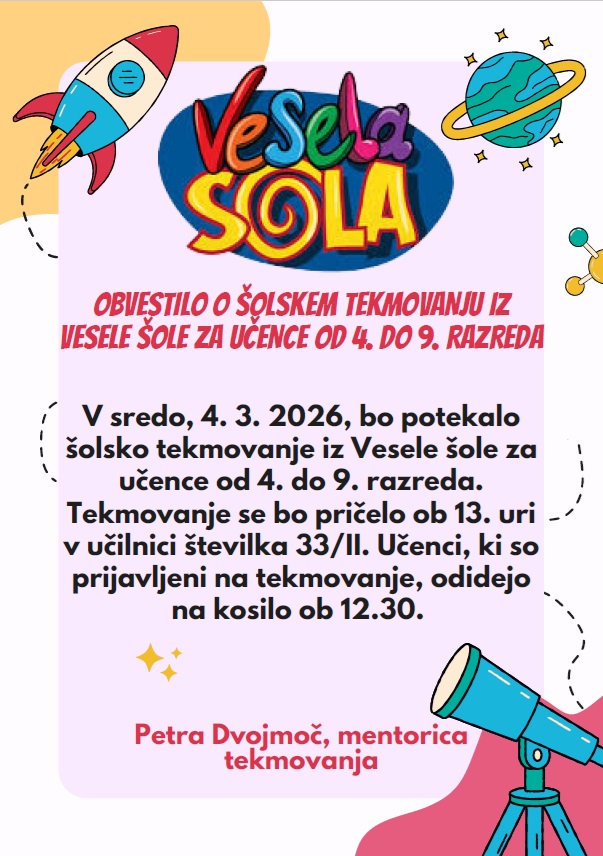 View Larger Image PRAV POSEBEN DAN, 19. 1. 2024 By OSSiska|2024-01-17T10:32:17+01:0017 januarja, 2024|Obvestila|Komentarji so izklopljeni za PRAV POSEBEN DAN, 19. 1. 2024 Share This Story, Choose Your Platform! FacebookXRedditLinkedInTumblrPinterestVkEmail About the Author: OSSiska Related Posts VESELA ŠOLA Gallery VESELA ŠOLA VABILO NA RODITELJSKI SESTANEK, 8.RAZRED Gallery VABILO NA RODITELJSKI SESTANEK, 8.RAZRED VABILO NA RODITELJSKI SESTANEK ZA 2.A RAZRED Gallery VABILO NA RODITELJSKI SESTANEK ZA 2.A RAZRED Učenci 7. razredov so srečno prispeli v CŠOD Kavka Gallery Učenci 7. razredov so srečno prispeli v CŠOD Kavka SIMULATOR ZA IZRAČUN TOČK PRED VPISOM V SREDNJO ŠOLO Gallery SIMULATOR ZA IZRAČUN TOČK PRED VPISOM V SREDNJO ŠOLO